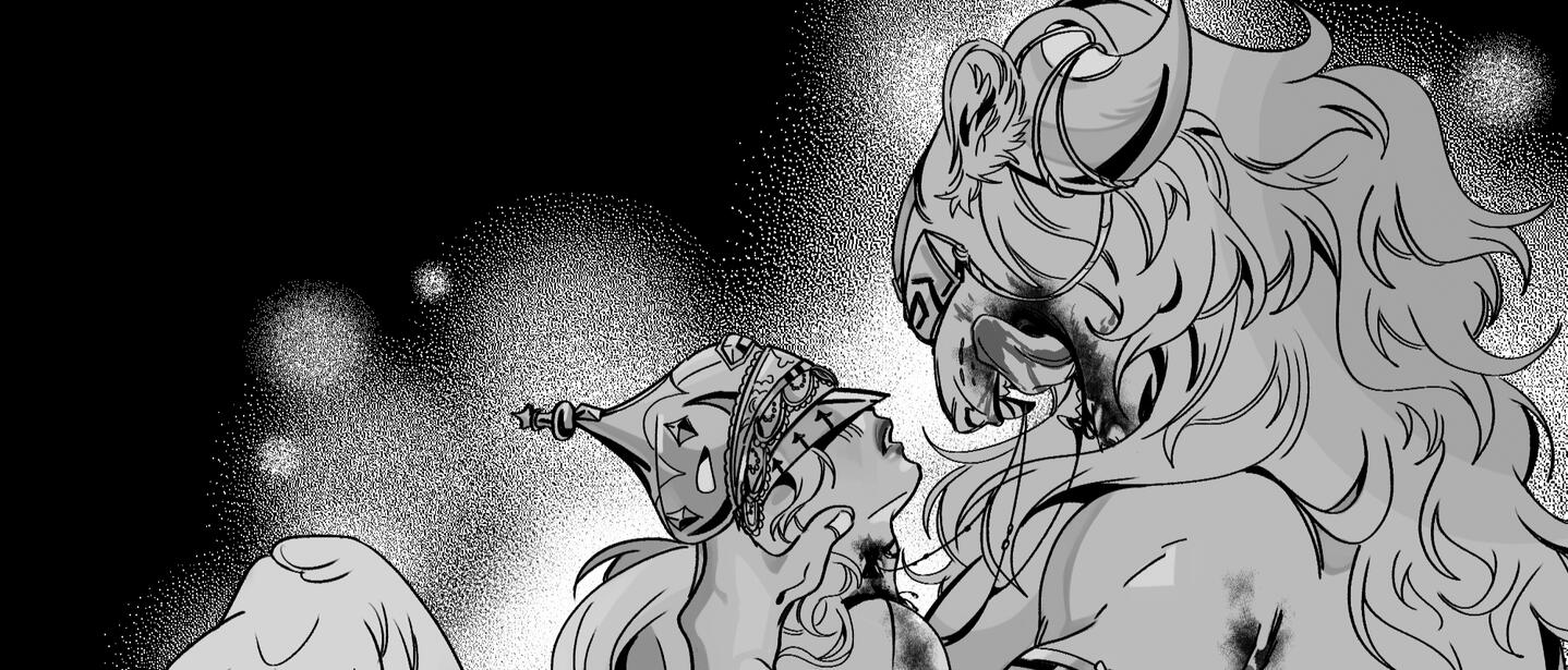 In the beginning, there was only void. When out of that void sprung consciousness, naturally the unconscious opened its eyes as well. These two opposing forces make up the fabric of reality, personified by the gods Ynuna and Oenar, humanity and monsters, femininity and masculinity, light and dark, day and night, reality and dreams. This is the constant push and pull of opposites which keep the world in balance. Throughout all myths of this word, these two figures can always be recognized.The true nature of the relationship between the gods is a mystery, but what is known is that they battled constantly for supremacy, locked in an unending and violent dance. Oenar’s monsters would torment humanity, and in turn humanity declared war on his monsters. This changed when Ynuna herself intervened, laying with a human man and conceiving the first king of Ferea. This child had been gifted the first Ynuna’s Blessing, able to control the ice and snow of the Ferean snow-wastes. With the help of the goddess, the king and his people pushed the monsters to the ends of the earth and killed Oenar, scattering his remains across Whicia.Today in Ferea, Ynuna is worshipped as the one true God and savior of humanity. Oenar has been recast as an unholy demon, a stain that was long ago rubbed out by their benevolent Mother. The Aramore lineage rules through her power, direct ancestors of the child that Ynuna conceived nearly a millennium ago. Furthermore, they share a heightened perception of the goddess, receiving guidance through her visions and prophecies. They closely guard her Blessing, passing it only to kings on the night of their coronation. But the human vessel cannot contain this power forever. The mind and body degrade, sanity eventually lost entirely, limbs rotted with frostbite. To die by Ynuna’s Blessing is to ascend to sainthood, forever immortalized in the tombs beneath The Ice Palace.✵Though his body was scattered, traces of Oenar’s power can still be found in the pieces left on earth. These Fragments of Oenar, as they would come to be called, contain a raw, unpredictable power – the ability to turn any human or animal into an Oenid. Through this transformation, they are granted immortality and monstrous abilities to shift their form at will. But, Oenids grow more monstrous as they age, eventually transforming into something else entirely. Some of the most powerful and elusive creatures in this world are Oenids who have reached this state.Meanwhile, behind the locked borders of Kaven, worship of Oenar remains supreme. These followers have been dubbed the “Cult of Oenar” by the Ferean state. In this belief, Oenar is reframed as a nature god who long ago tried to save the world by preventing Ynuna’s meddling. He is a martyr, and the world suffers in his absence. Generally speaking, members of the cult have a more positive view of monsters – thinking them essential to the environment and the world at large. This belief often coincides with other esoteric practices, such as astromancy and divination.Deep in the bowels of Oesueña, the Queen of Kaven lays her plan. Worshipping her God in the secret chambers of the palace, Maria Valencia X assembles the Fragments of Oenar, hoping to one day revive her dead God.